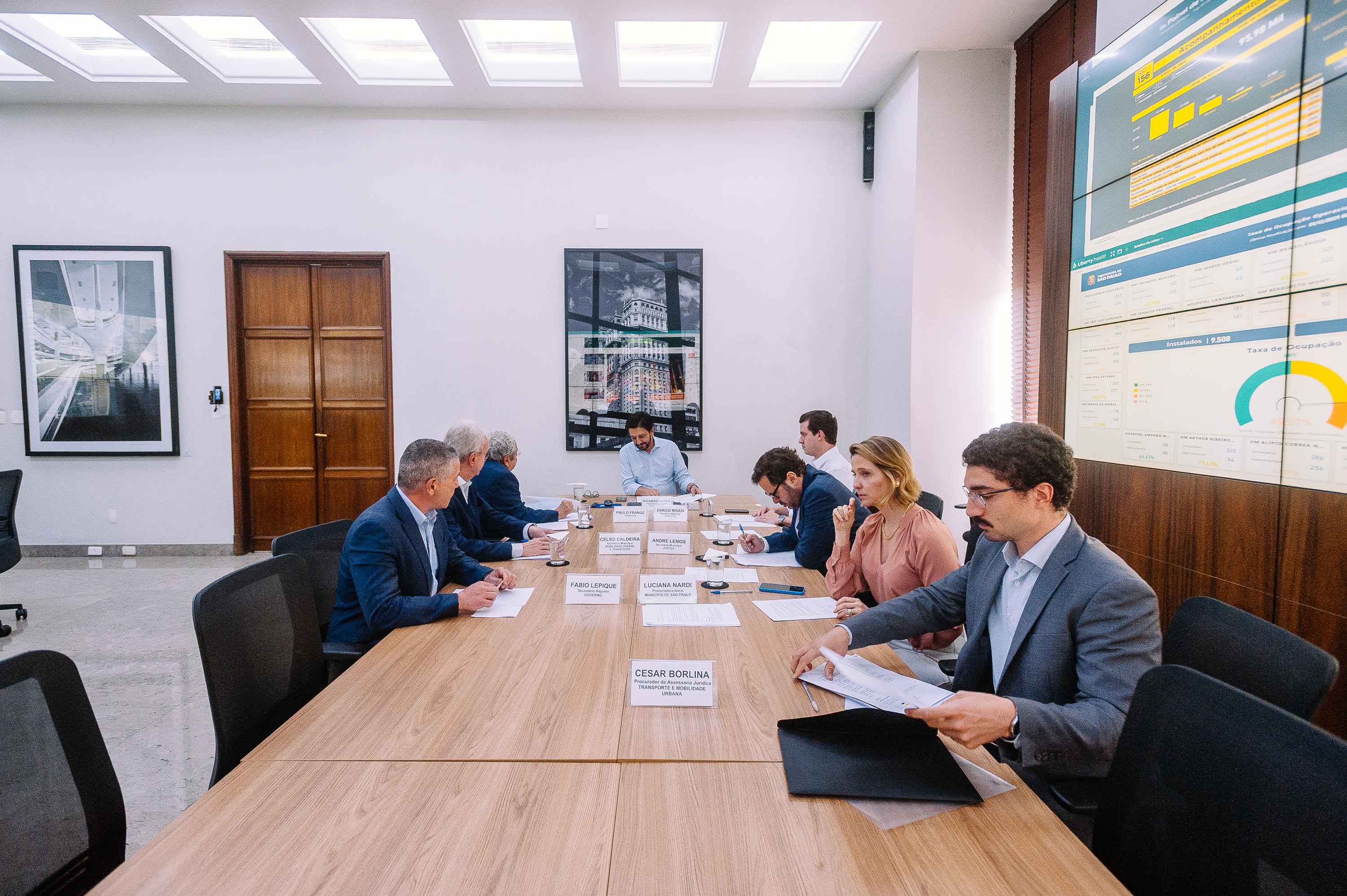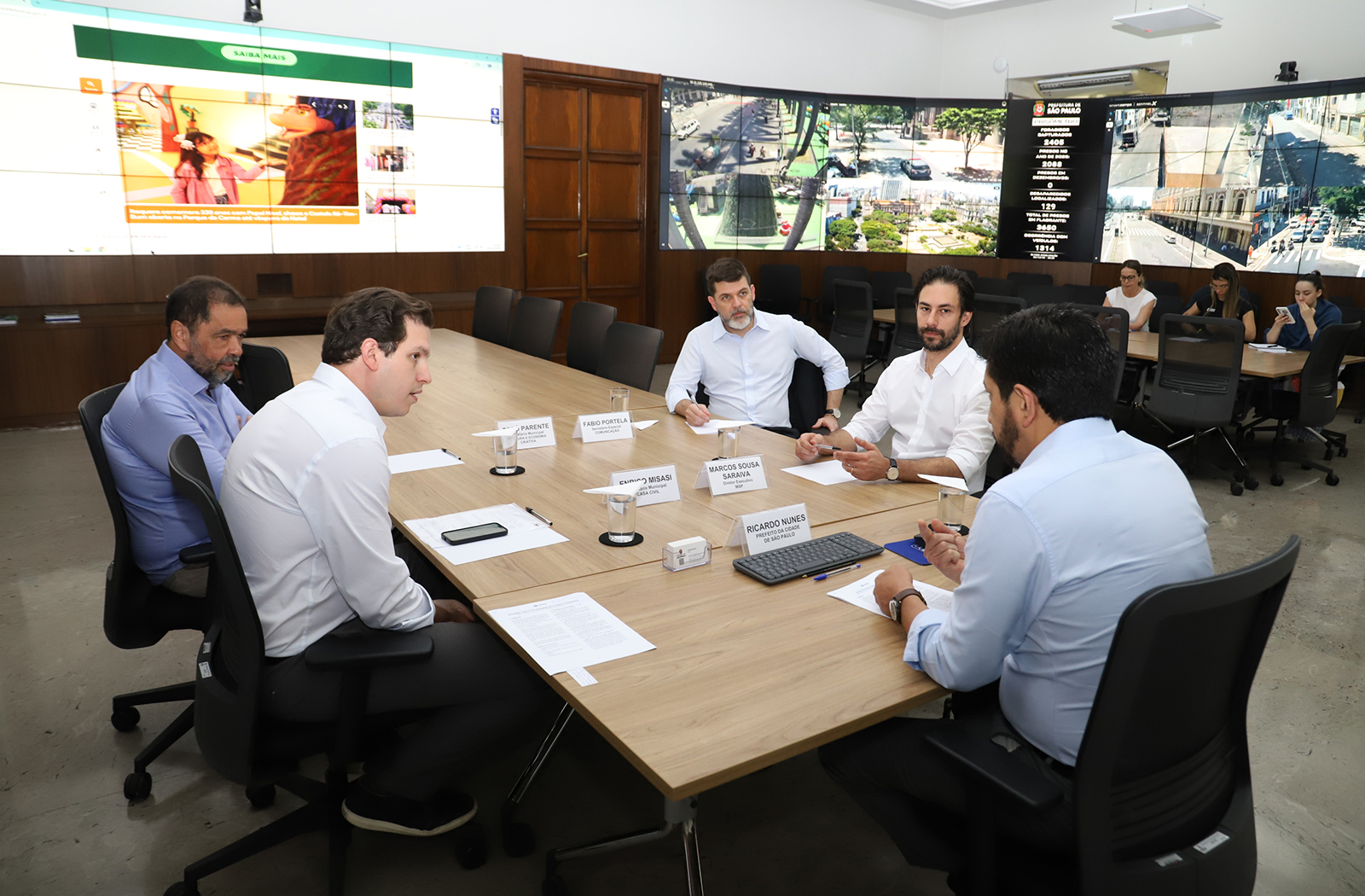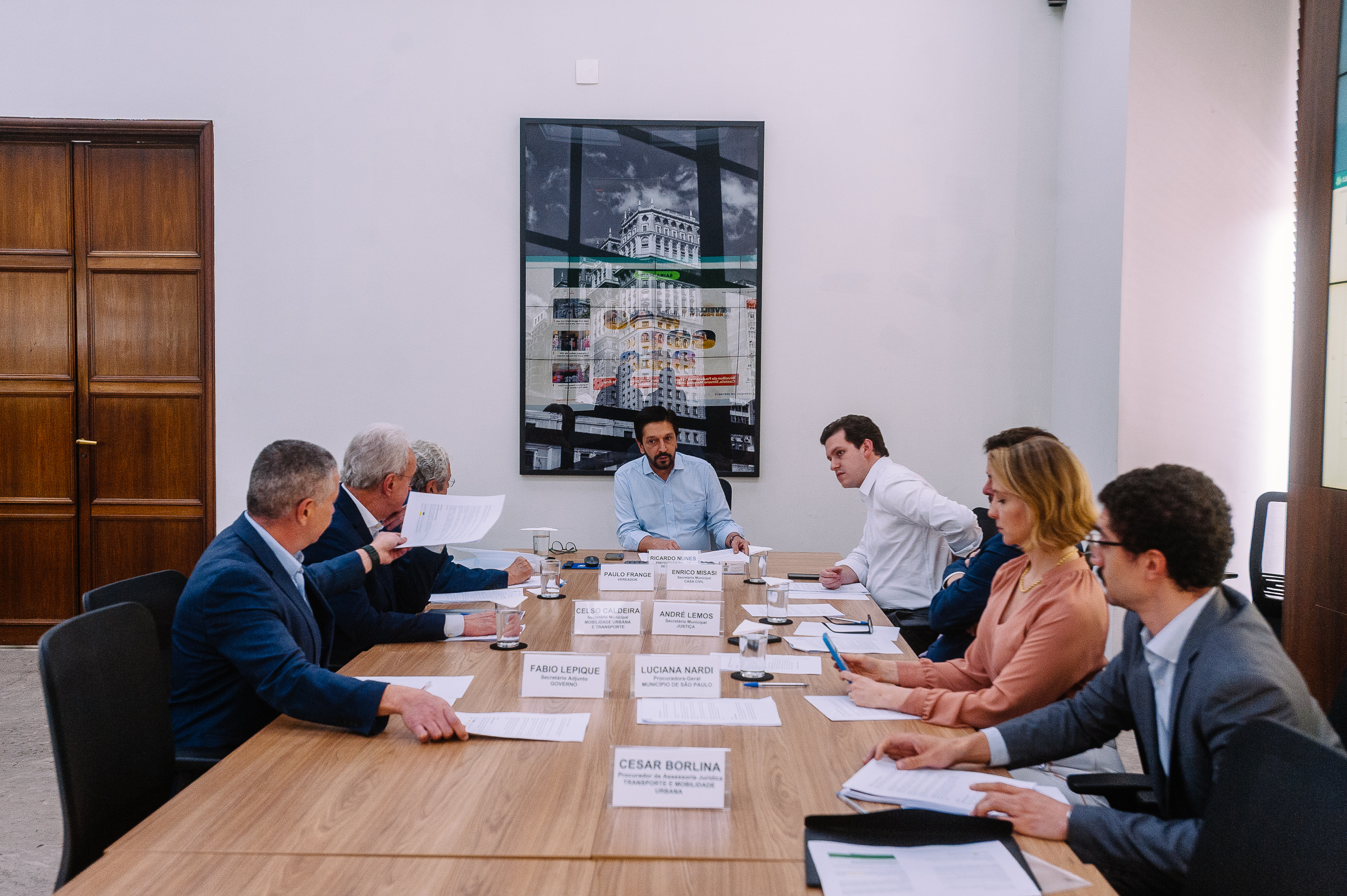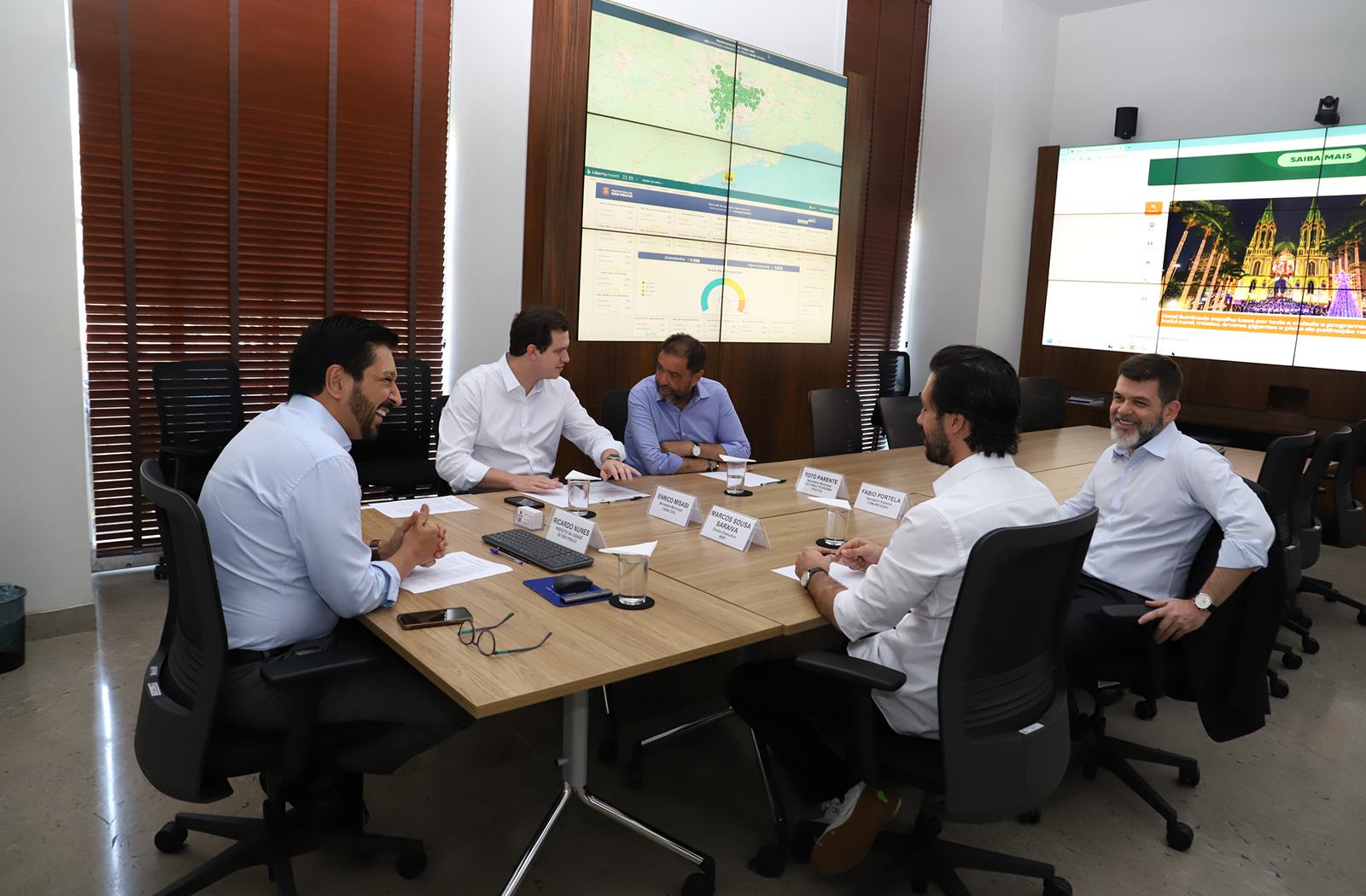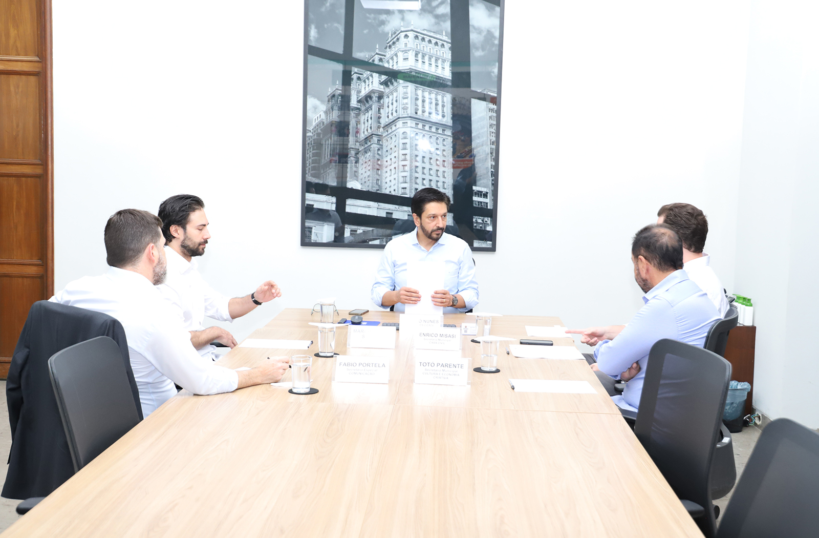 Ricardo Nunes recebeu em seu gabinete os secretários Enrico Misasi (Casa Civil), André Lemos (Justiça), Celso Caldeira (Mobilidade Urbana e Transportes) e a procuradora-geral do Município, Luciana Nardi.