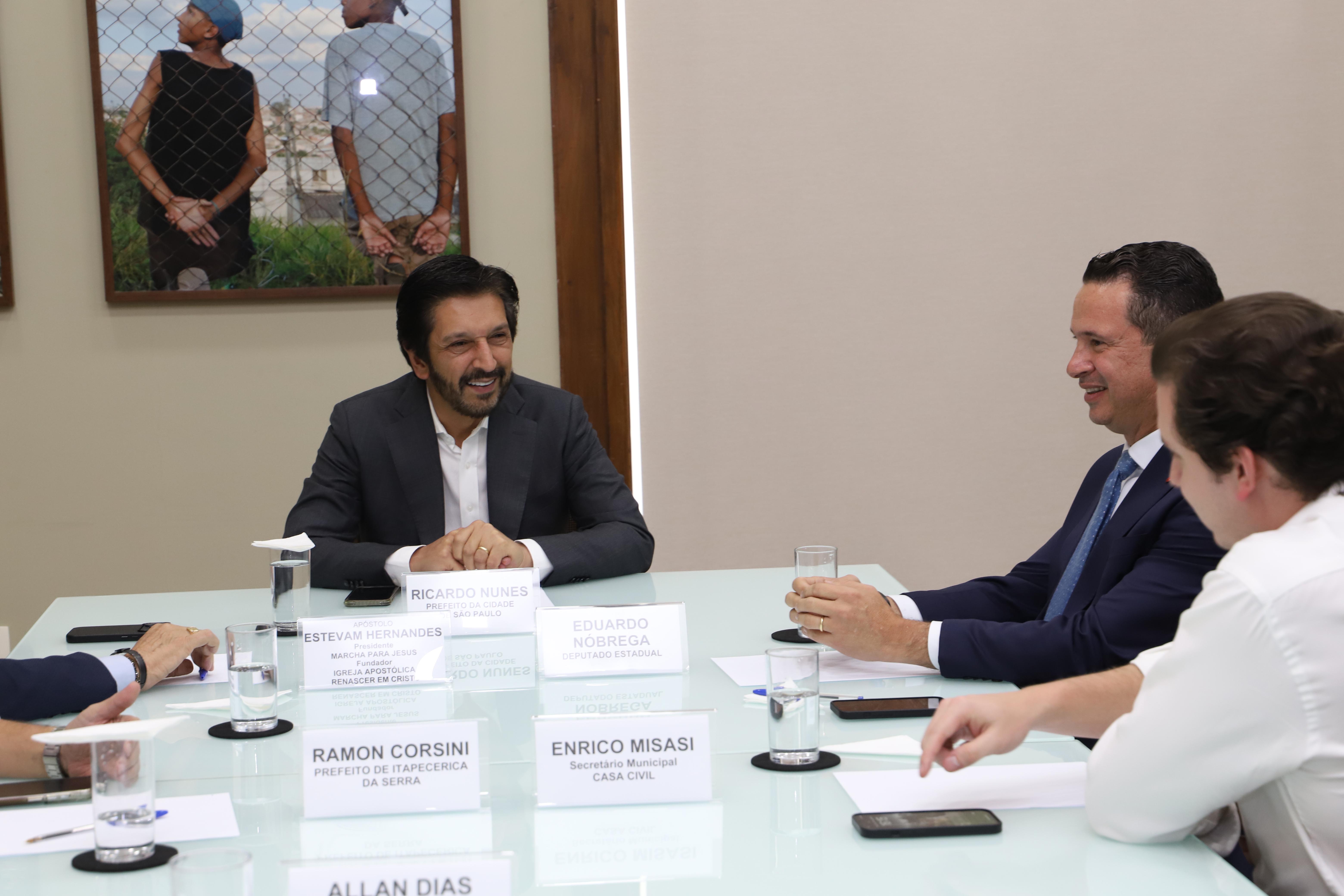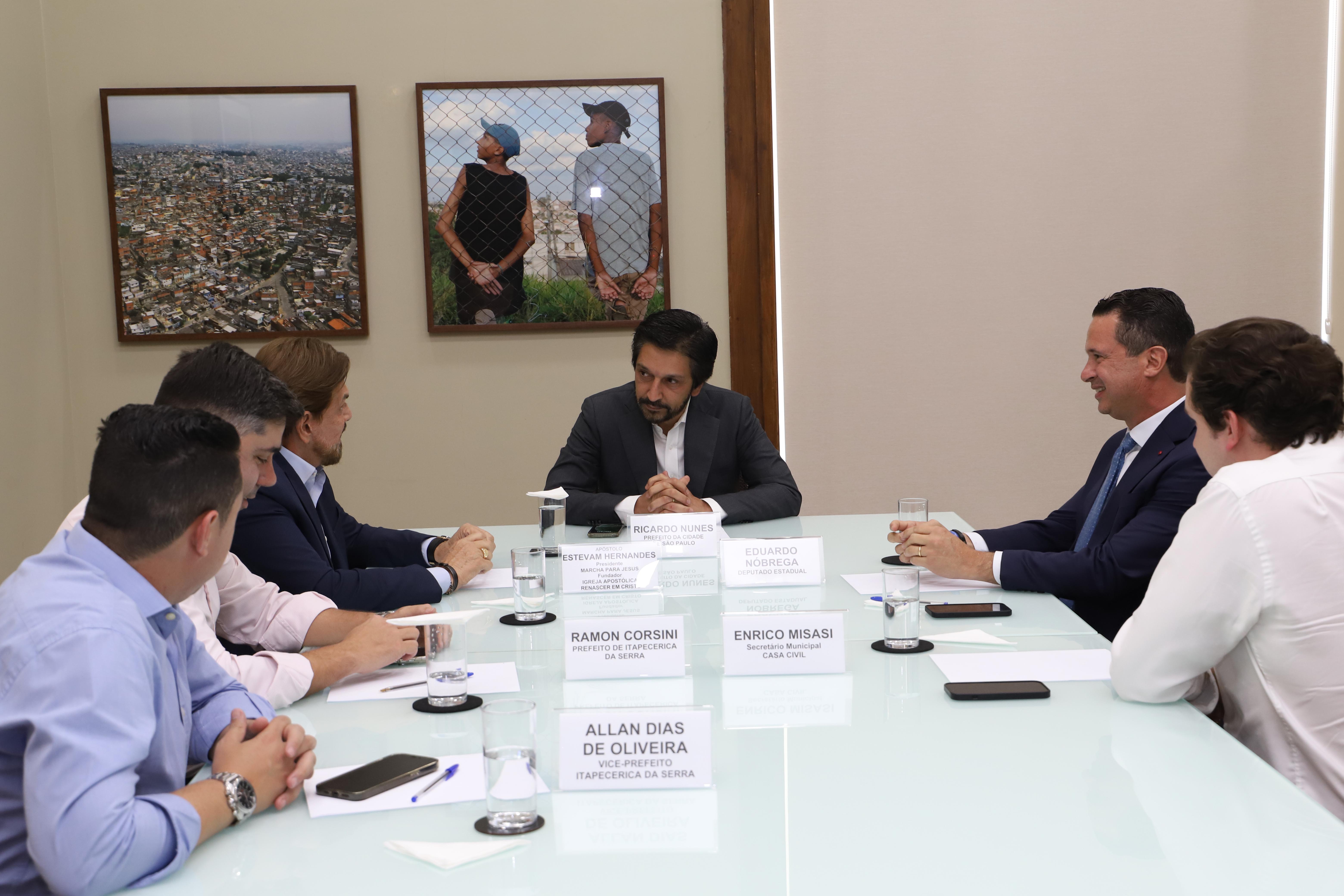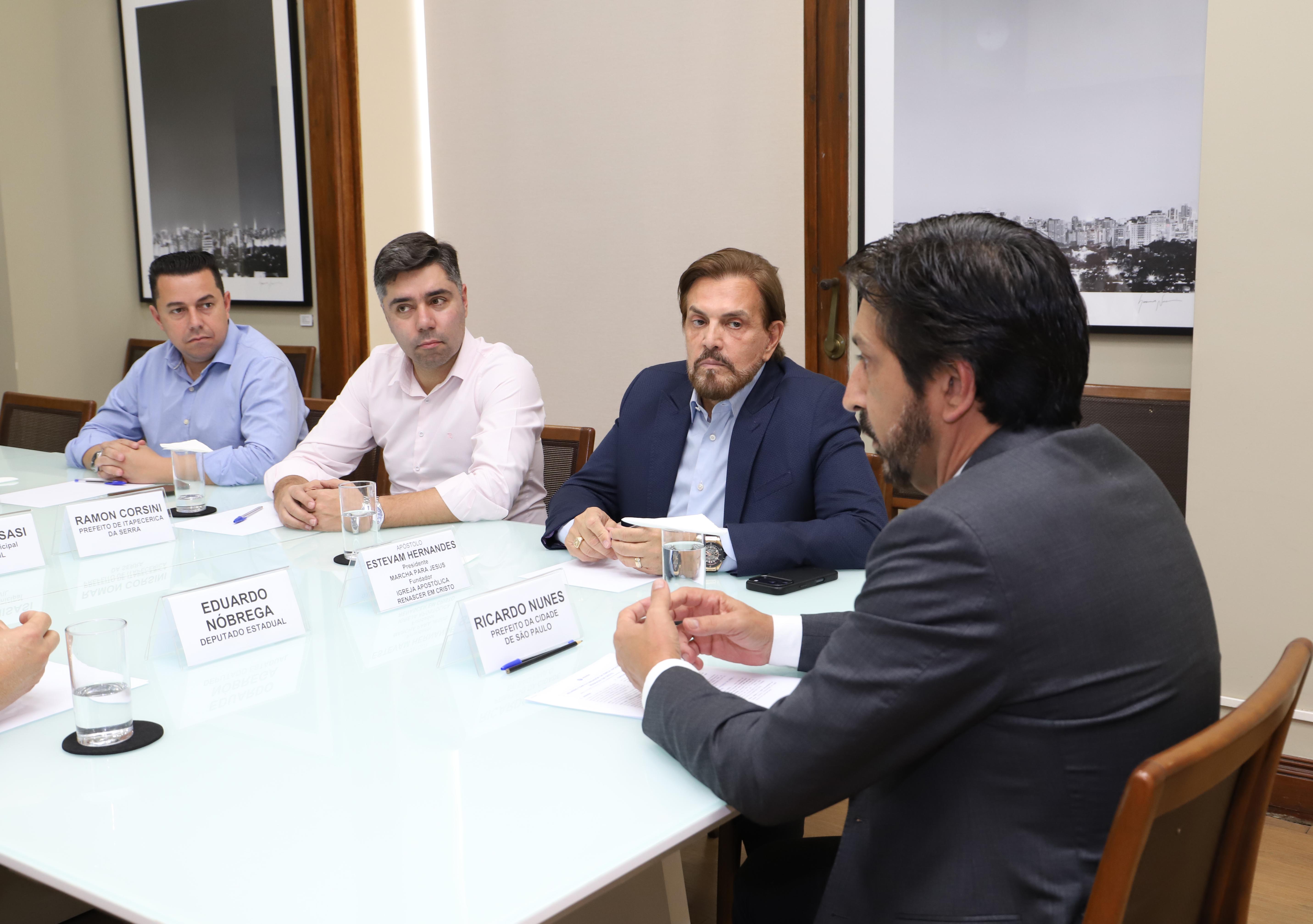 Nesta tarde, o prefeito Ricardo Nunes e reuniu, em seu gabinete, com o Apóstolo Estevam Hernandes, Fundador da Igreja Apostólica Renascer em Cristo e presidente da Marcha para Jesus no Brasil. Participaram também o prefeito de Itapecerica da Serra, Ramon Corsini, o deputado estadual Eduardo Nóbrega e o secretário Municipal da Casa Civil, Enrico Misasi.