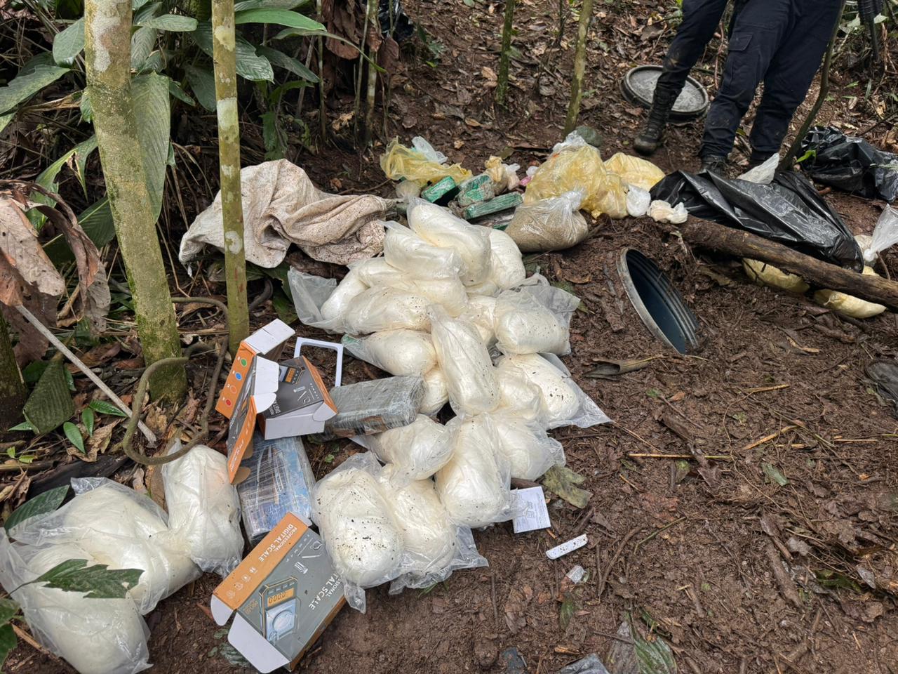 Durante as buscas na área, os agentes localizaram um barracão improvisado, montado no meio da vegetação, que funcionava como um laboratório de refino. No local, foram encontrados equipamentos, insumos e drogas já processadas e prontas para a distribuição. Ao todo, a GCM apreendeu 46 quilos de pasta base de cocaína — substância que, segundo a corporação, pode gerar até 30 quilos de cocaína por quilo refinado — além de nove quilos de drogas já prontas para o consumo.