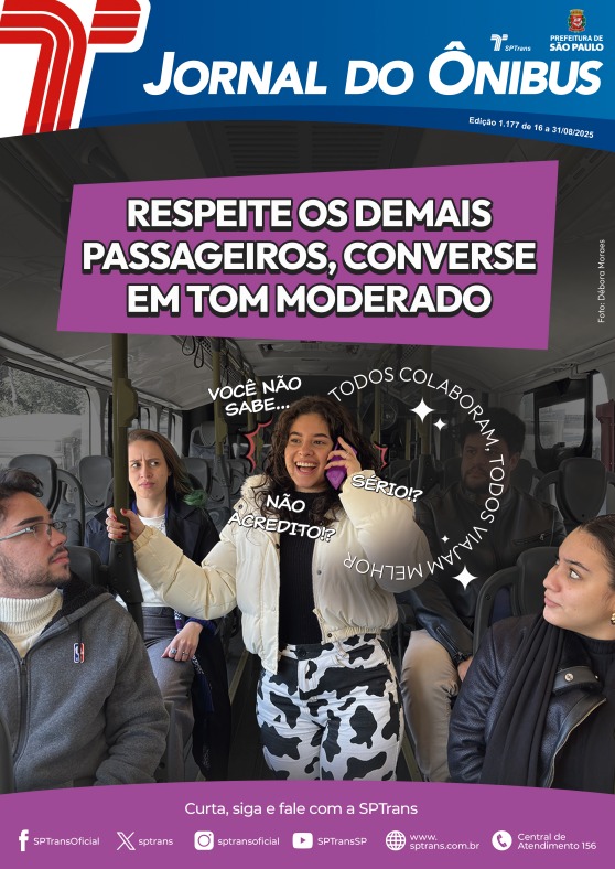 A partir deste sábado (16), a edição 1.177 do Jornal do Ônibus estará disponível nos veículos do sistema de transporte público municipal para conscientizar os passageiros a manter uma viagem agradável para todos. A publicação da SPTrans destaca campanha sobre a importância de manter um tom de voz moderado durante as viagens, visando o bem-estar e o respeito entre os passageiros.