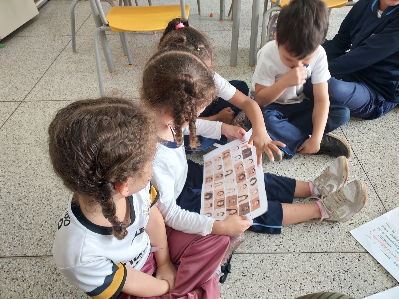 A segunda etapa do projeto mergulhou na valorização da identidade por meio da obra “Humanae”, da fotógrafa Angélica Dass. As crianças realizaram autorretratos, fotografaram colegas e criaram um painel coletivo com a “paleta de cores do Bologne”, celebrando a diversidade presente na comunidade escolar.