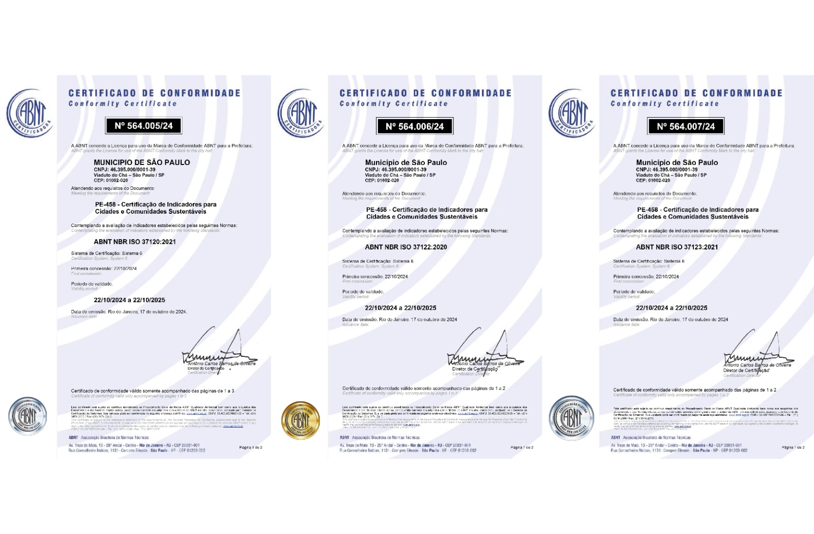Para conseguir a certificação, São Paulo destacou-se como epicentro da tecnologia e qualidade de vida, alcançando os níveis máximos de certificação: ISO 37120 (Cidades Sustentáveis - Platina), ISO 37122 (Cidades Inteligentes - Ouro) e ISO 37123 (Cidades Resilientes - Platina).