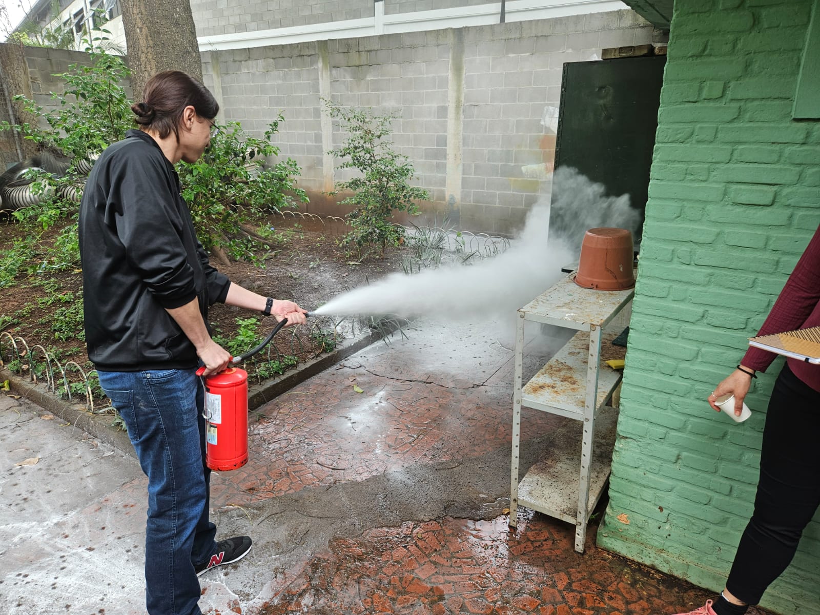 A palestra teve ainda uma demonstração prática com extintor de pó químico. Quem passou pela experiência, descobriu que o extintor pode ser mais leve e fácil de se manusear do que se imagina