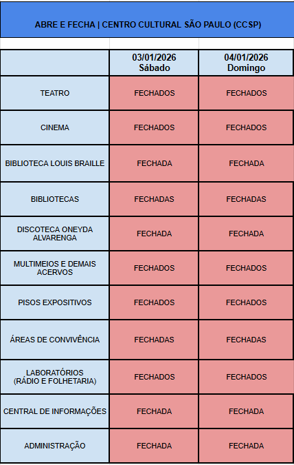 Centro Cultural da Juventude Ruth Cardoso estará fechado nos dois dias.