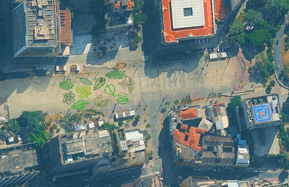 “O projeto é uma homenagem à floresta que existiu no local, e reforça a importância das espécies nativas e do valor do reino vegetal para a vida humana, desde o aproveitamento das folhas que caem, cuja decomposição enriquece naturalmente a terra, até o uso das caixas de madeira como ‘píxeis vegetais’, remetendo ao grafite: tudo ágil, espontâneo e ao mesmo tempo monumental, como as forças da natureza”, explica o artista. “As árvores instaladas na obra”, continua, “são uma referência a algumas das espécies nativas que existiam no local há séculos, para reflexão do que deveria ser o bioma antes da intervenção do ser humano — afinal, Anhangabaú é terra indígena.”