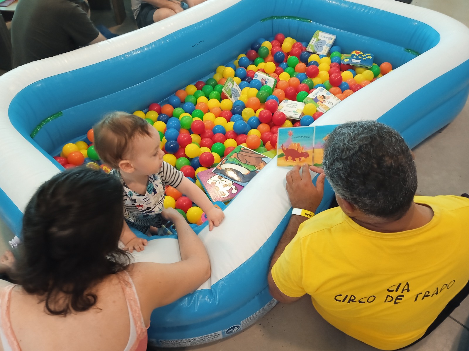 Duas piscinas de bolinhas são montadas, os livros infantis são distribuídos dentro delas e nos arredores. Crianças e adultos mergulham no Banho de Livros com as mediadoras de leitura e aproveitam a brincadeira de partilhar momentos a partir do rico acervo de literatura infantil. Banho de livros é uma atividade de mediação de leitura criada para a primeira infância que busca exercitar com as famílias o hábito de partilhar leitura com as crianças desde os primeiros meses de vida. A mediação de leitura inclui o livro no cotidiano das pessoas de forma leve, enriquece o imaginário das pessoas e gera curiosidade pela literatura infantil. Consideramos o mediador de leitura essencial para a formação de leitores, pois cria e fortalece fortes vínculos afetivos entre as pessoas, equipamentos culturais e livros.