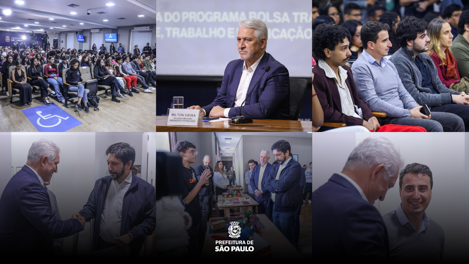 Nesta terça-feira (17), a Secretaria Municipal de Inovação e Tecnologia (SMIT) participou de mais uma formatura do Programa Bolsa Trabalho, iniciativa em parceria com SMDHC e SMDET, voltada para a inclusão de jovens em uma programação preparatória para o mercado de trabalho. O evento aconteceu no Auditório da Prefeitura e contou com a presença do Prefeito Ricardo Nunes, do Secretário Municipal de Inovação e Tecnologia, Milton Vieira, e de outras autoridades.