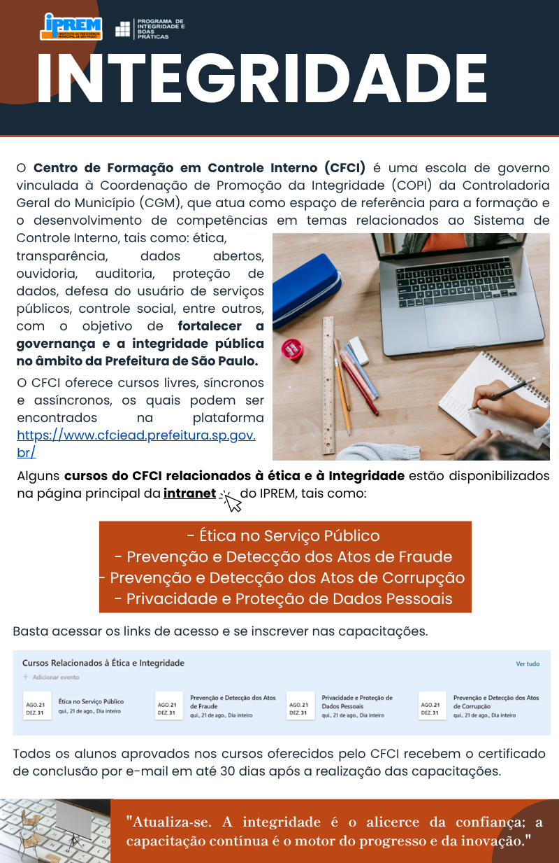 Informativos sobre integridade, ética e o Programa de Integridade e Boas Práticas (PIBP)