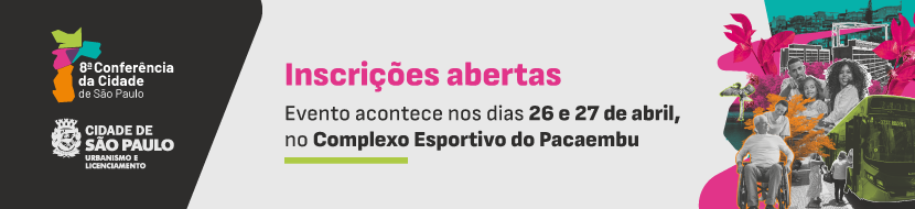 A Prefeitura de São Paulo e a sociedade civil abrem, nesta segunda-feira (07), as inscrições para a 8ª Conferência Municipal da Cidade. O evento será um espaço de discussão e construções de soluções para os desafios da capital, além de eleger delegados para a etapa estadual. A conferência ocorrerá nos dias 26 e 27 de abril, no Complexo Esportivo do Pacaembu. As inscrições seguem até 20 de abril ou até o preenchimento das vagas, conforme a capacidade do local. Clique aqui para se inscrever.