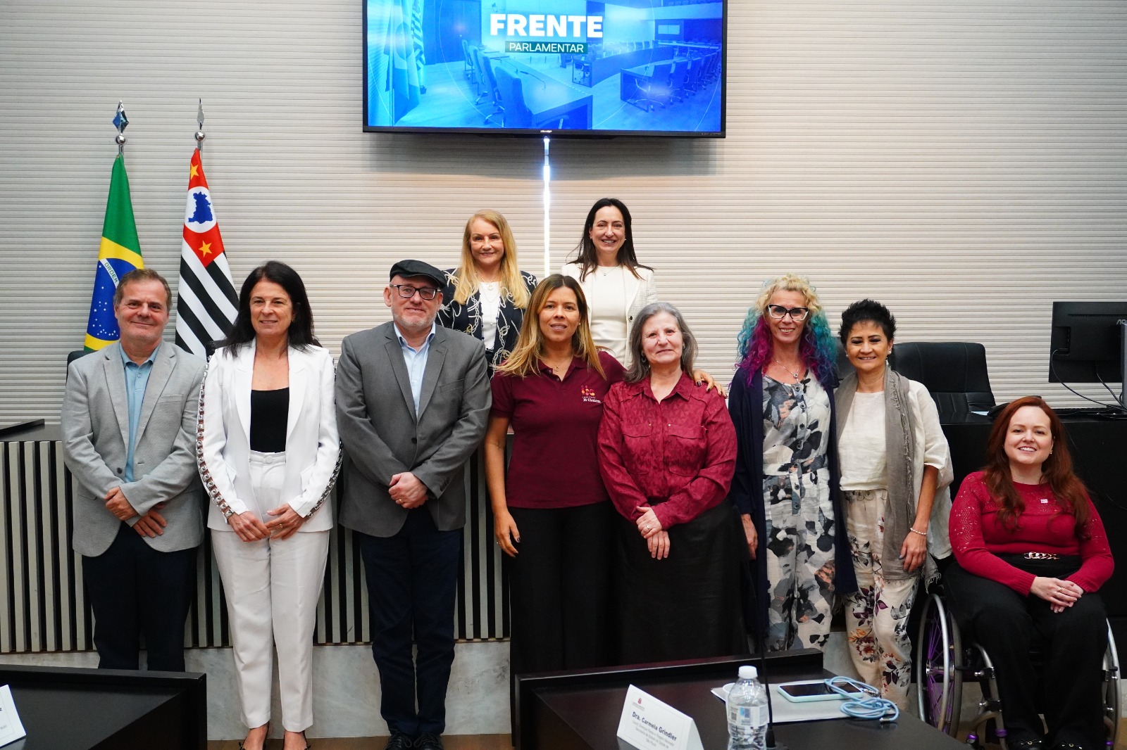 (Carlos Eugênio Andrade - terceiro a partir da esquerda - durante encontro na Alesp com parlamentares e associações para debater triagem neonatal - Acervo/SMS)