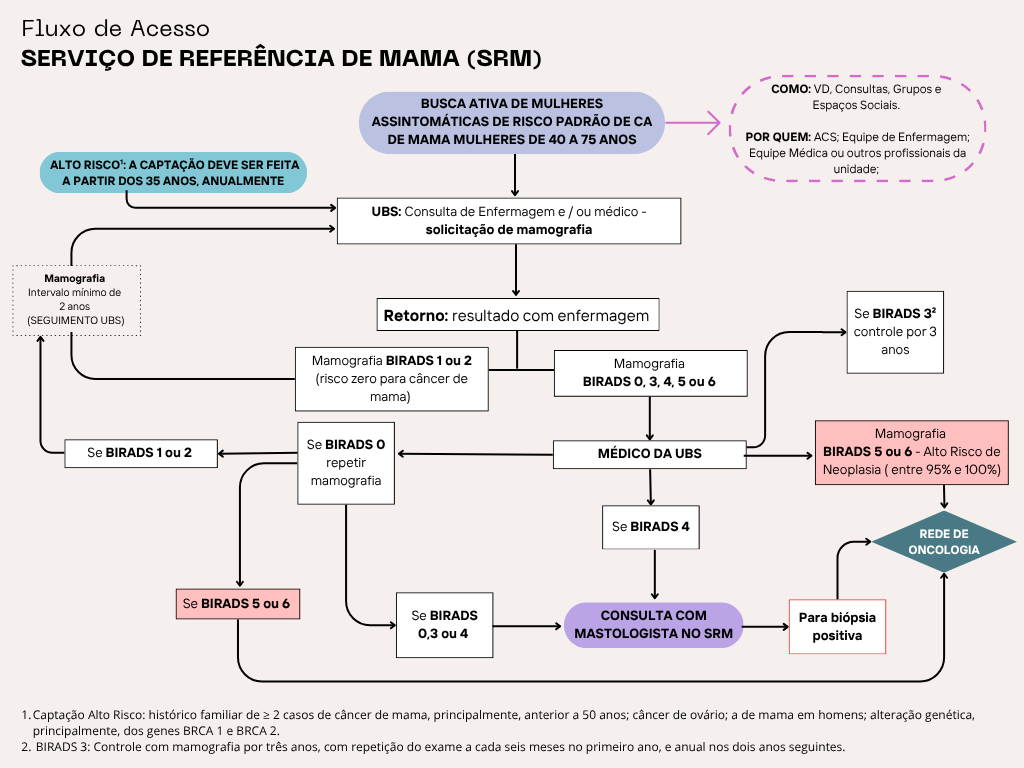 É um serviço que possui como objetivo melhorar e ampliar o acesso e a qualidade da atenção voltada ao diagnóstico das doenças mamárias. Existem 14 unidades de Serviços de Referência de Mama (SRM), no município de São Paulo, para o apoio da rede de Atenção Básica na avaliação diagnóstica e seguimento de lesões mamárias. Esses serviços estão disponibilizados nas seis Coordenadorias Regionais de Saúde (CRS) da cidade.