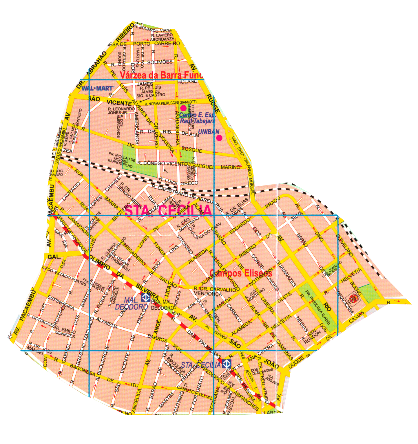 - Mapa Santa Cecília Fonte: Multimapas, Mapa Turístico de São Paulo