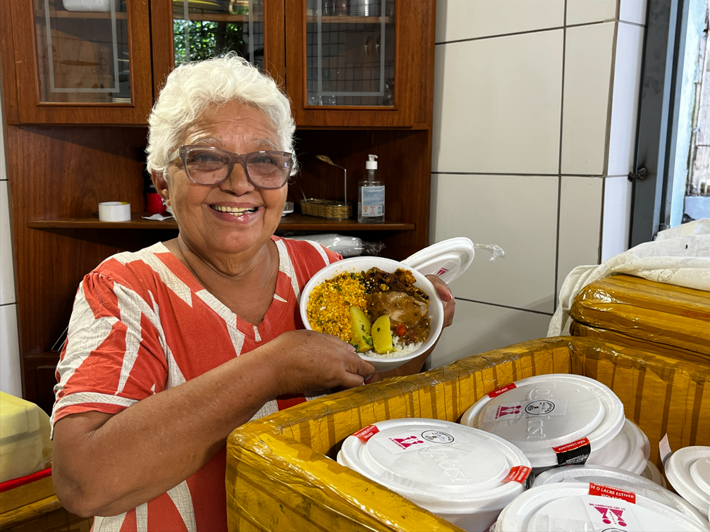 Além de impactar diretamente a rotina das famílias atendidas, o programa Rede Cozinha Escola tem se consolidado como uma alternativa de reinserção para mulheres com mais de 60 anos que enfrentam dificuldades no mercado de trabalho. É o caso de Joalice Santiago, de 72 anos, que relata ter enfrentado dificuldades para manter as despesas da casa. Segundo ela, a participação na iniciativa representou uma mudança significativa em sua vida, tanto no aspecto financeiro quanto na recuperação da autoestima e do sentimento de utilidade social.