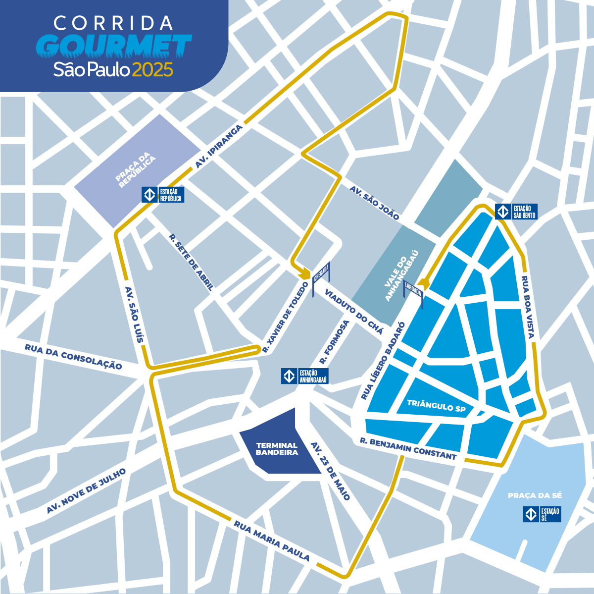 A Prefeitura de São Paulo, por meio da Secretaria Municipal de Turismo, é a responsável pela ativação turística da região do Triângulo SP, no Centro Histórico de São Paulo. Como parte das ações de fomento ao turismo nesta área, será realizada, no dia 15 de novembro, feriado da Proclamação da República, a inédita Corrida Gourmet.