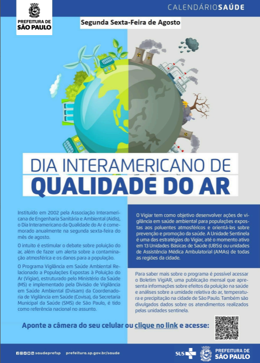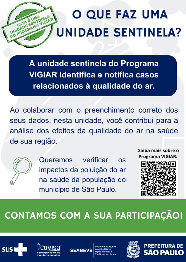 O Programa de Vigilância em Saúde Ambiental Relacionado a Populações Expostas à Poluição do Ar do Município de São Paulo - VIGIAR, desenvolve ações visando a promoção da saúde da população exposta aos fatores ambientais relacionados aos poluentes atmosféricos.