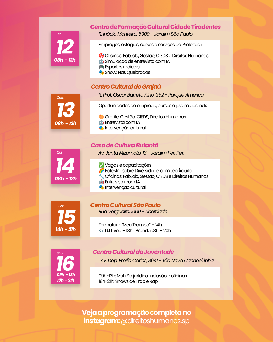 Um dos momentos mais simbólicos da programação foi a formatura do projeto Meu Trampo, que ocorreu no Centro Cultural São Paulo. Lançada em janeiro de 2023 e voltado para jovens de 15 a 29 anos, o projeto seleciona participantes com base no interesse em aprender e empreender. Em 2025, milhares de jovens foram mobilizados no projeto e, nesta edição, se formaram 600 alunos.